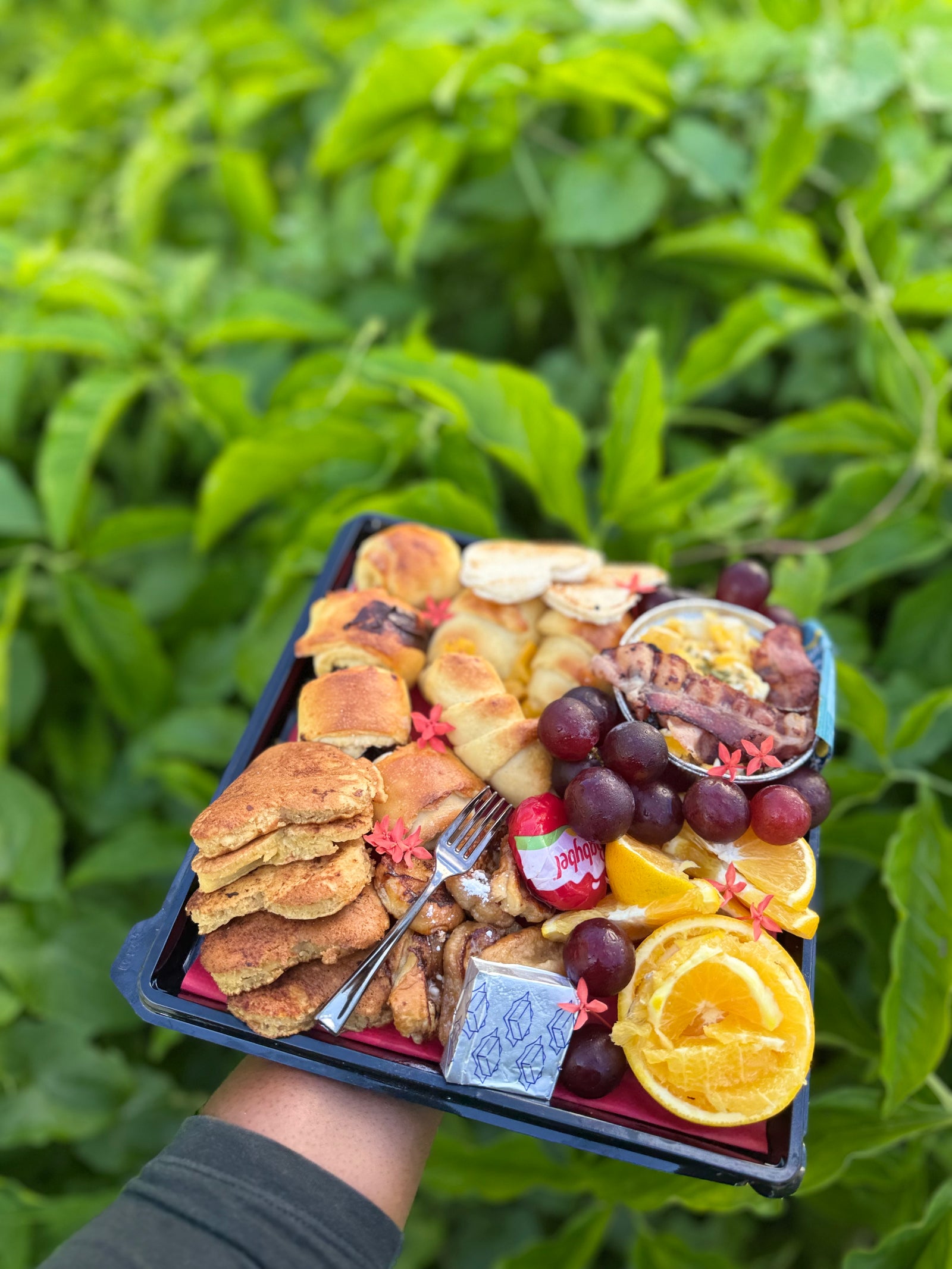 The Box Sunlight is a box Full of color and deliciousness, composed of scrambled eggs and succulent bacon, PanCoeur (heart-shaped pancake) and Coeur perdu (heart-shaped French toast), a mix of delicious and colorful fruit, and homemade pastries.